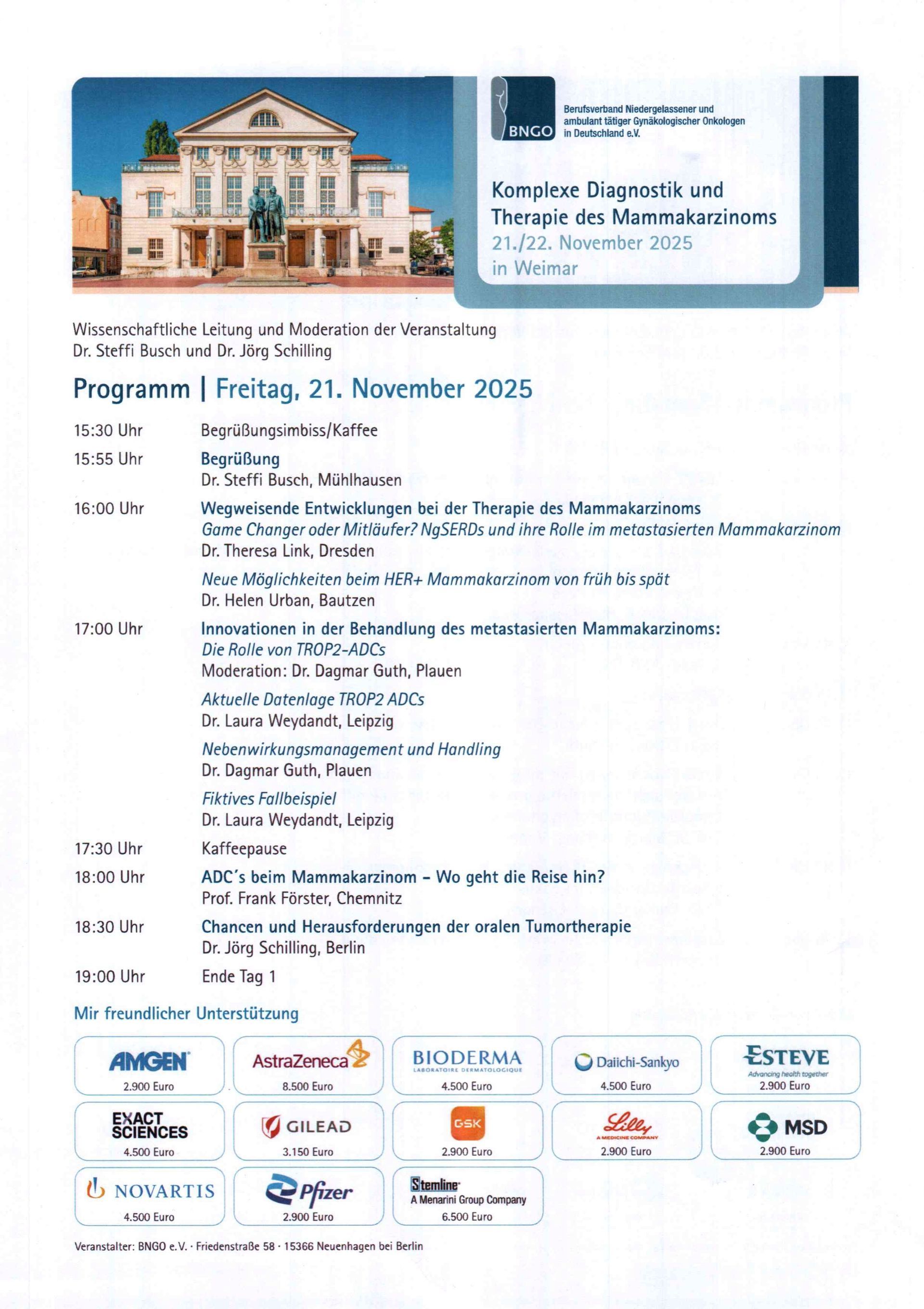 Das vergangene Wochenende auf der BNGO Tagung in Weimar war für mich spannend, da ich Teilnehmerin aber auch Referentin sein durfte. Diese Veranstaltung brachte Fachleute aus der Gynäkologischen Onkologie zusammen, die sich mit den neuesten Entwicklungen und Forschungen im Bereich der Mammakarzinome beschäftigen.